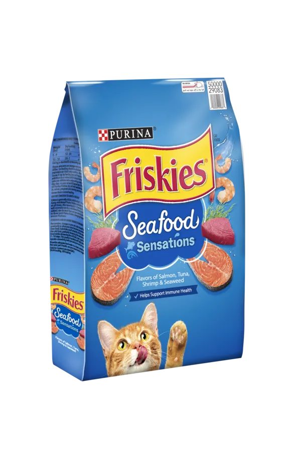 Purina® Friskies® Seafood Sensations está formulado para cumplir con los niveles nutricionales establecidos por los perles de nutrientes de alimentos para gatos AAFCO para todas las etapas de la vida.