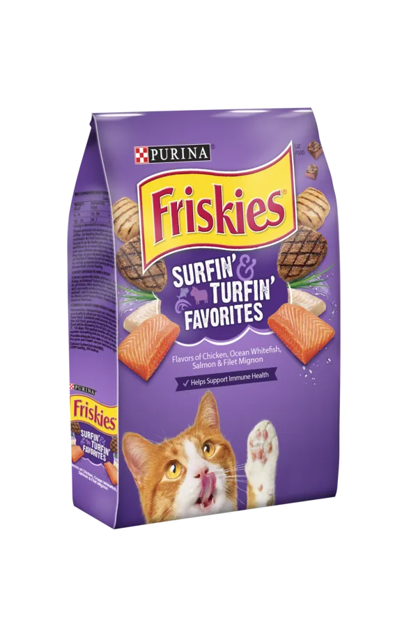 Las pruebas de alimentación animal que utilizan procedimientos AAFCO conrman que Purina® Friskies® Surn '& Turn' Favorites proporciona una nutrición completa y equilibrada para todas las etapas de la vida de los gatos.